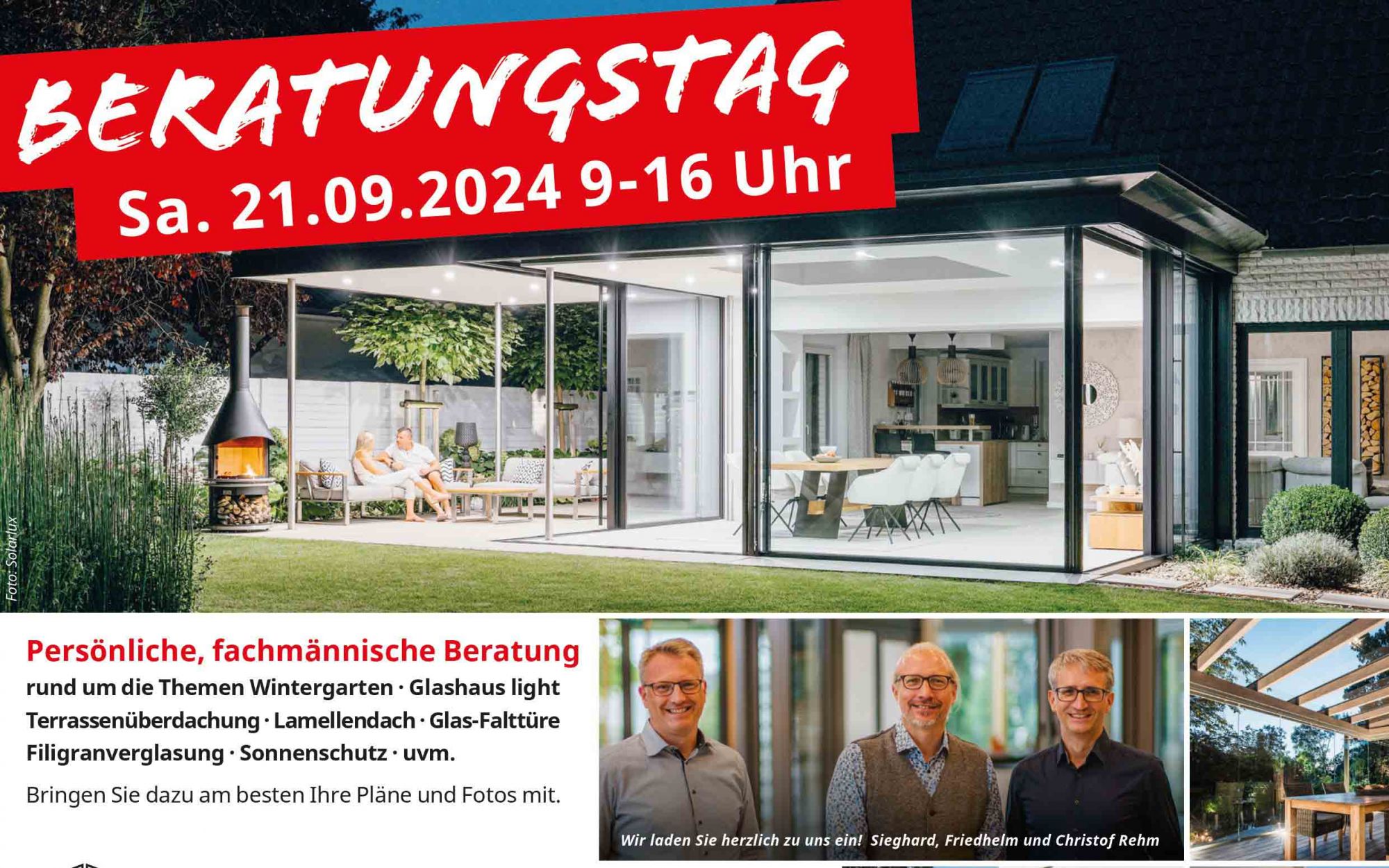 Nutzen Sie den TERRASSENTAG - einfach mal schauen oder sprechen Sie mit unseren fachkundigen Glashaus Rehm Mitarbeitern. Bringen Sie dann am besten Ihre Pläne und Fotos mit!