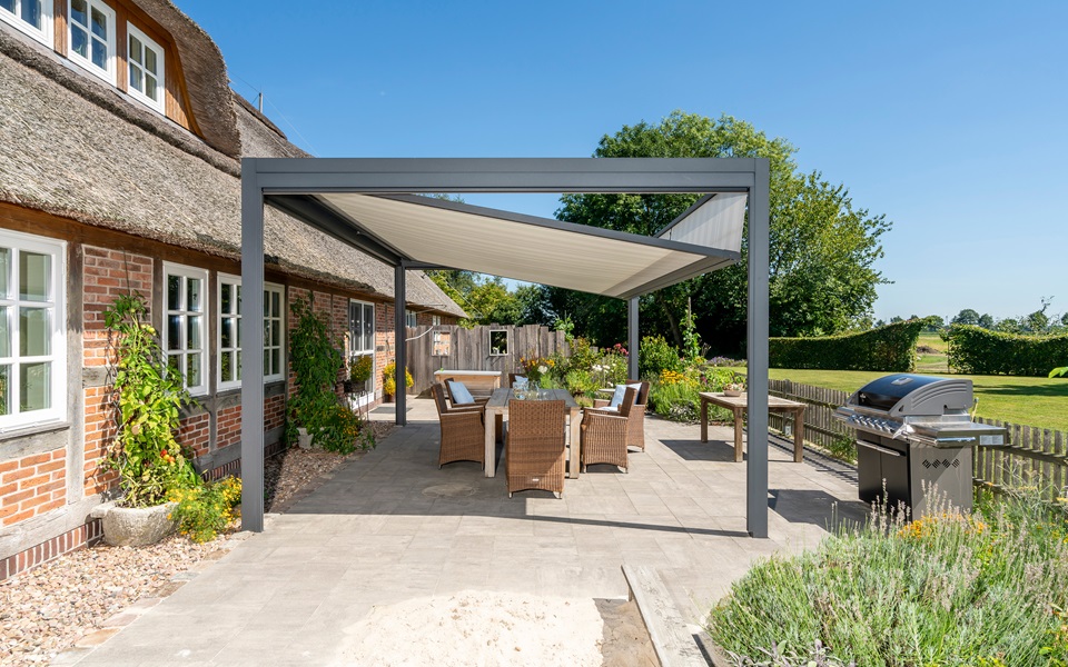 Ein schlüssiges Sonnenschutz- und Lüftungskonzept rundet diesen Glasraum ab und macht ihn zu diesem wunderschönen Platz an der Sonne.