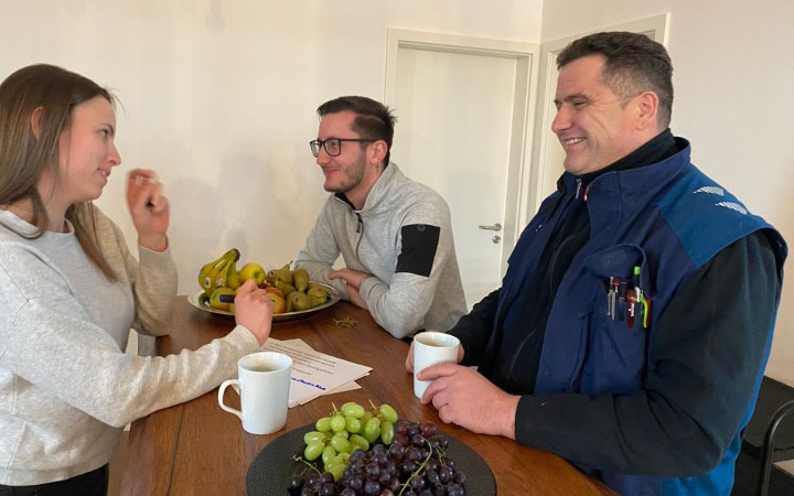 Die Monteure und die 3 Chefs haben zum Beispiel gemeinsam die Ergebnisse unserer regelmäßigen Kundenzufriedenheitsabfrage ausgewertet.